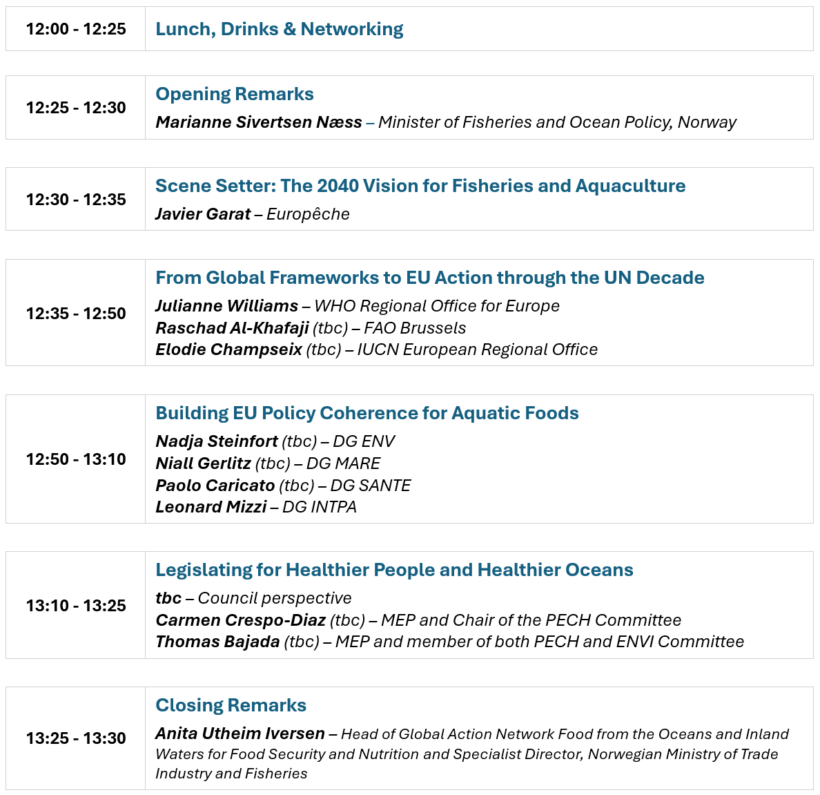 Bringing together EU institutions, Members of the European Parliament and UN bodies, this event will foster cross-agency dialogue and identify concrete policy pathways to embed aquatic foods across the EU policy landscape in the next phase of the Decade of Action on Nutrition.